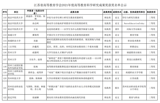 根据省高教学会《关于开展2021年度高等教育科学研究成果奖评选活动的通知》(苏高教会〔2022〕7号)精神,各单位共推荐申报406项成果,经组织专家组评议、评审委员会审定,共评选出奖项143项。
