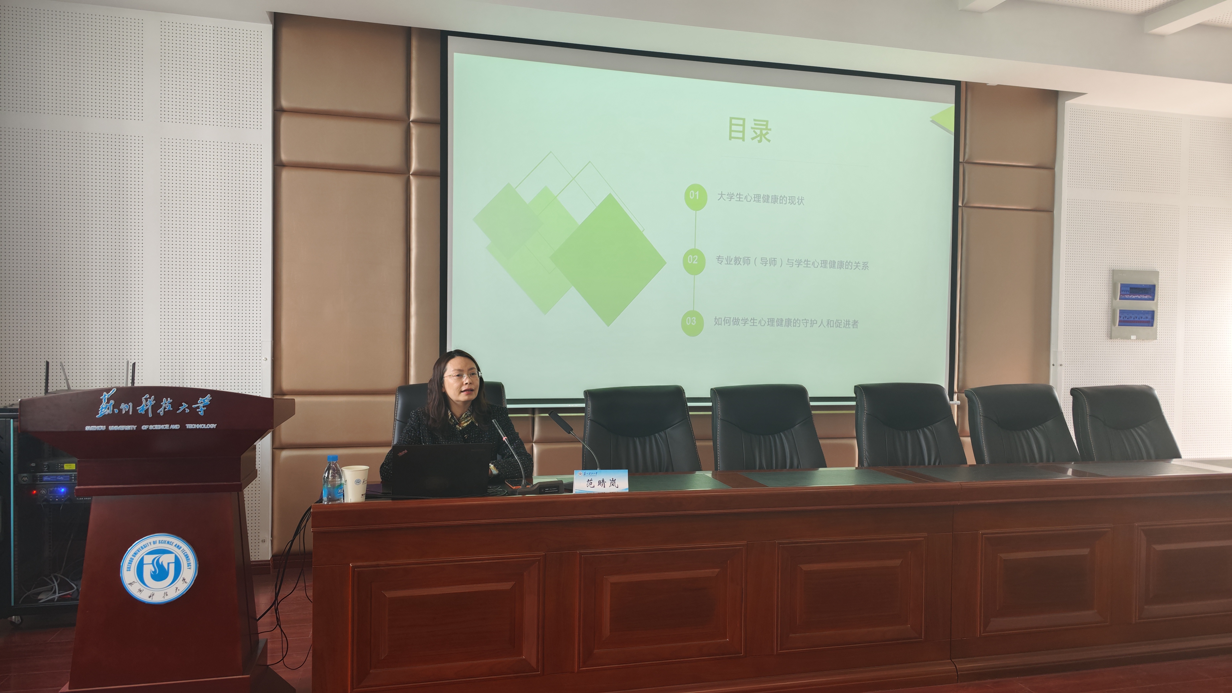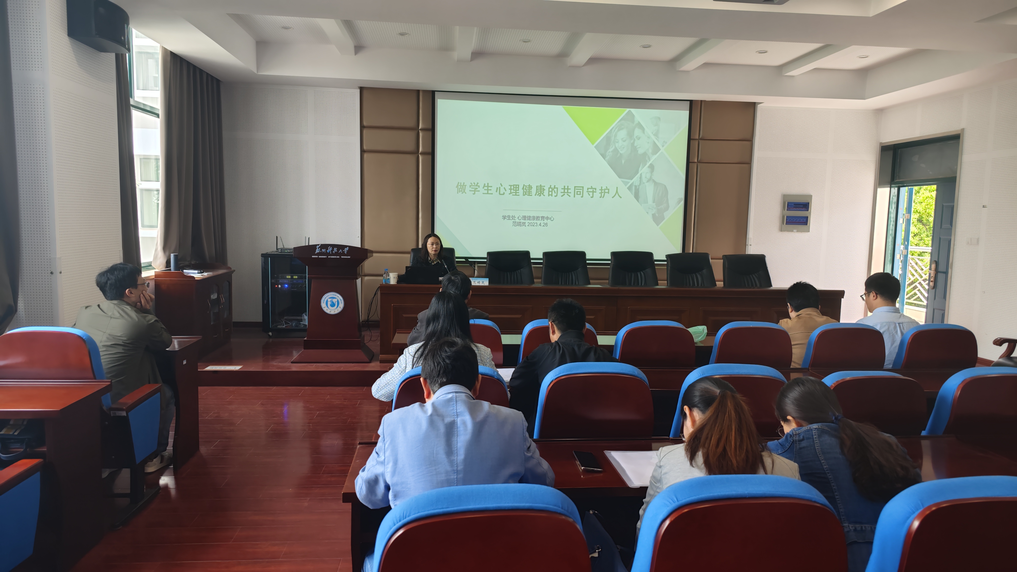 为强化专业老师心理育人职责,提升老员工心理健康教育工作的针对性和有效性,4月26日下午,乐天使在公司报告厅开展“做员工心理健康的共同守护人”专题讲座,特邀校员工工作处副处长、心理健康教育中心主任范晴岚老师主讲,公司领导班子成员、专业老师及全体辅导员参加。