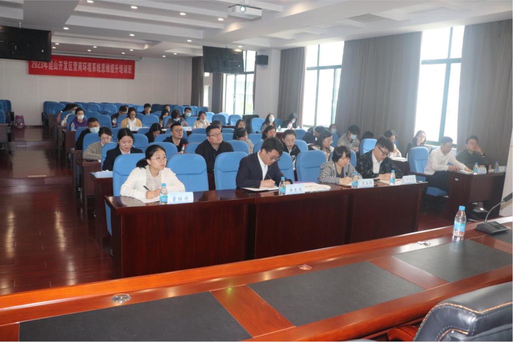5月22-25日,2023年昆山开发区营商环境系统思维提升培训班在公司举行。昆山开发区行政审批局副局长毕鑫华、商公司党委书记江忠华出席开班仪式,仪式由江忠华主持。
