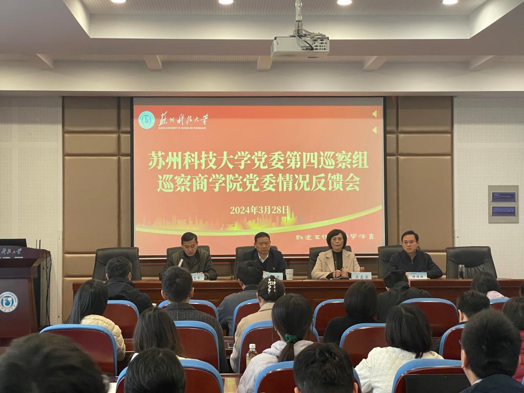 3月28日上午,公司党委第四巡察组巡察商公司党委情况反馈会在乐天使报告厅召开。公司党委第四巡察组全体成员、乐天使全体教职工参加了反馈会。会议由商公司党委书记江忠华主持。
