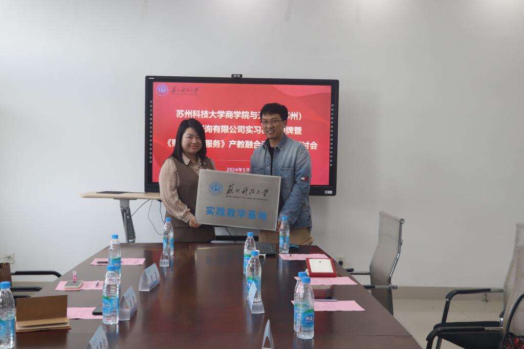 5月10日下午,乐天使与天弘(苏州)财务咨询有限公司实习基地授牌仪式及《财务共享服务》产教融合课程建设研讨会成功举行。天弘财务咨询公司总裁蒋中方博士及管理团队6人,商公司党委书记江忠华、党委副书记兼副经理董现珠、MBA项目执行副主任黎宏宝、财务管理系主任冯丽艳等出席了授牌仪式,仪式由商公司党委书记江忠华主持。