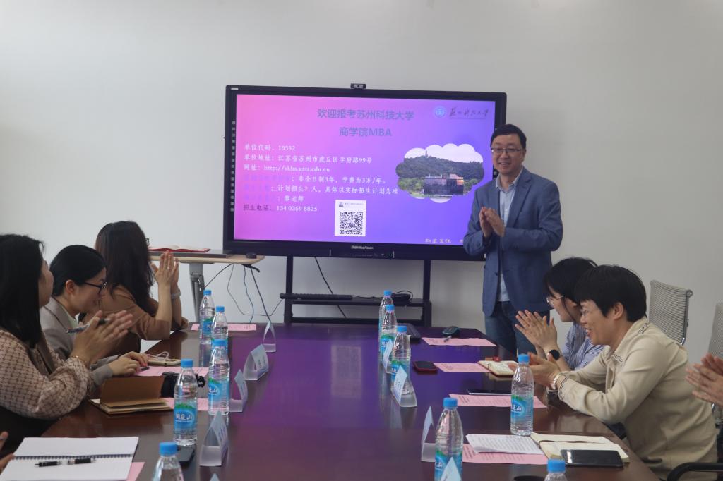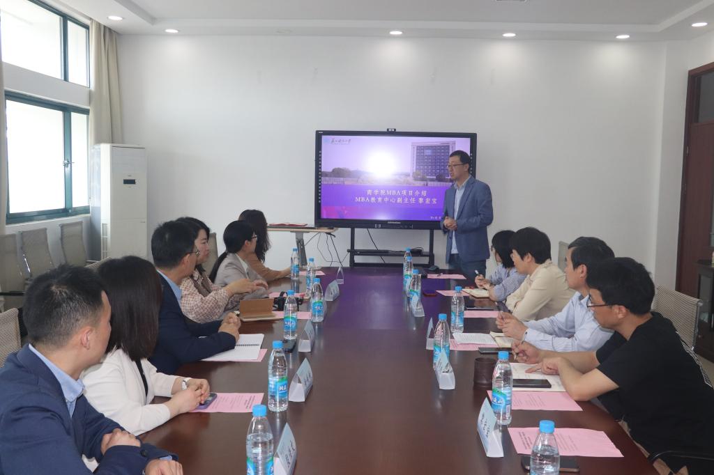 公司MBA项目执行副主任黎宏宝就乐天使MBA项目的优势、特色等进行了展示,并欢迎天弘财务咨询公司的员工报考公司MBA项目。