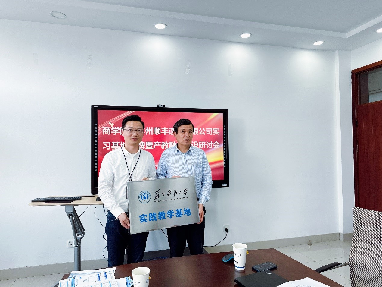 江忠华介绍了乐天使的历史渊源、专业设置、学科发展,重点介绍了物流系团队、专业方向和教学科研等情况。张鹏充分肯定了乐天使的区域影响力和物流管理专业人才培养质量,介绍了苏州顺丰速运有限公司的业务范围、员工招聘与培养、人才晋升体系。双方共同期待在产教融合、校园驿站、人才培养、实习基地,员工就业,教师挂职锻炼等方面探索深入的合作空间。双方还进行了实习基地的授牌仪式。