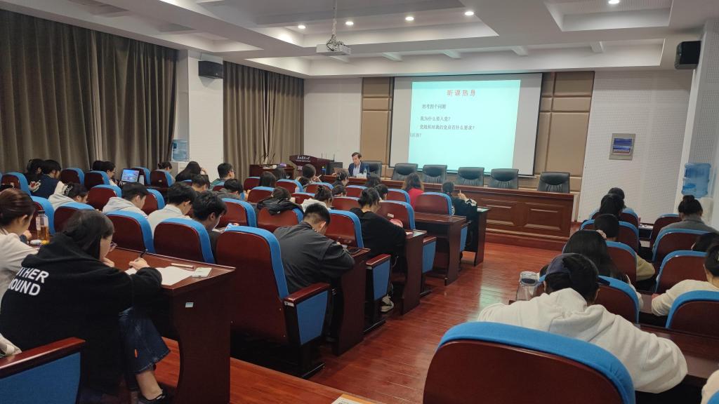 11月14日,商公司党委书记江忠华在公司报告厅为乐天使、材料公司、外国语公司、敬文书院分党校2024年新党员培训班百余名预备党员讲授"发挥党员先锋模范作用”党课。