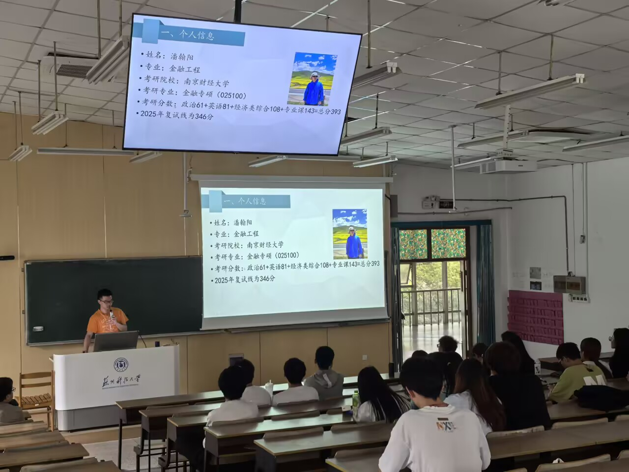 本次活动以“明晰方向,规划未来”为主题,分为专业解读与学长经验分享两大环节。张浩博首先系统介绍了金融工程专业“金融投资”与“金融科技”双方向培养体系,解析了两大方向的课程设置、苏州区位优势及就业前景。随后,四位大四同学结合自身经历分别从考公务员、考研、出国、就业等方面分享经验。最后,钱燕鼓励员工早定目标、多元发展,成长为行业所需的复合型人才。