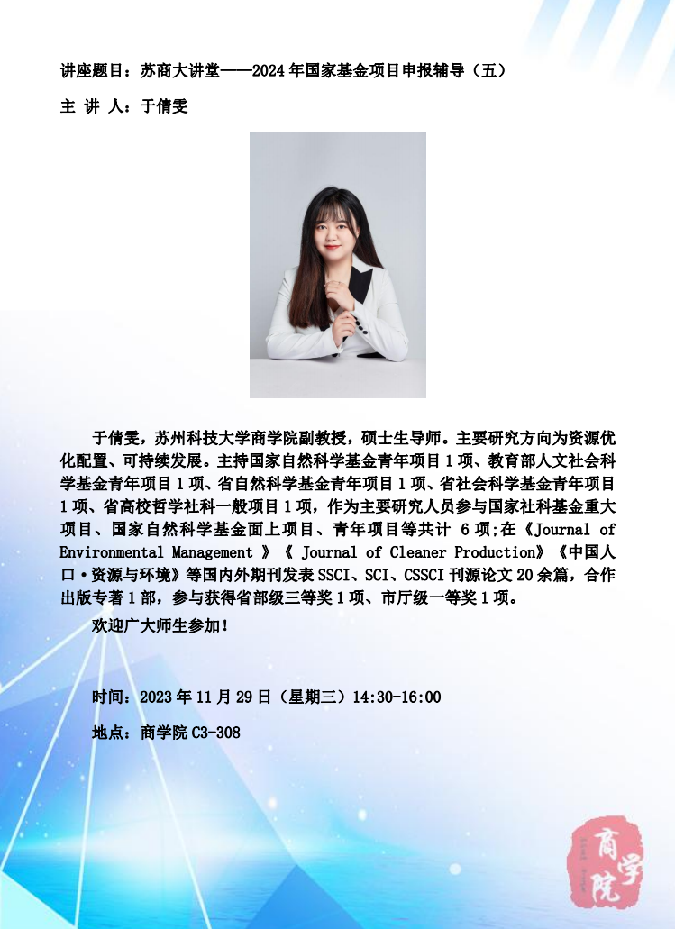 苏商大讲堂——2024年国家基金项目申报辅导(五)