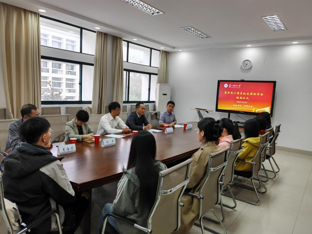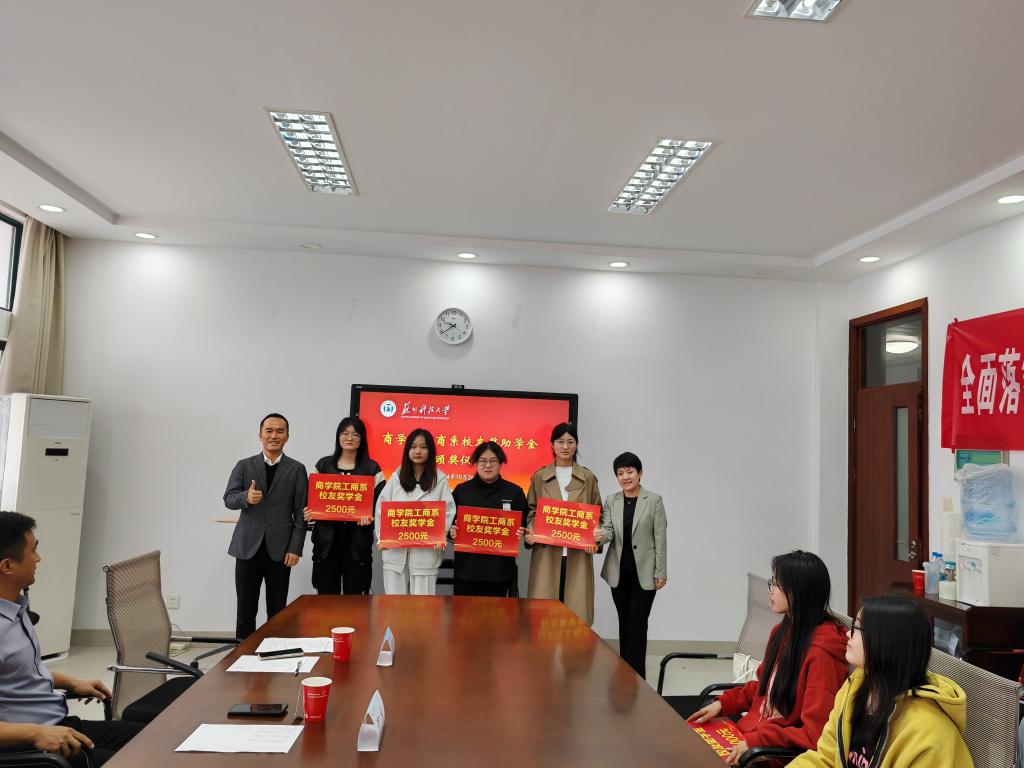 董现珠和夏海力为获奖同学颁发员工助学金;万礼和周平为获奖同学颁发员工奖学金。董现珠对工商系员工心系母校、慷慨捐赠表示衷心感谢,希望同学们增强家国情怀,常怀感恩之心,发奋学习、成就梦想、勇于担当,为公司和社会的发展做出贡献。